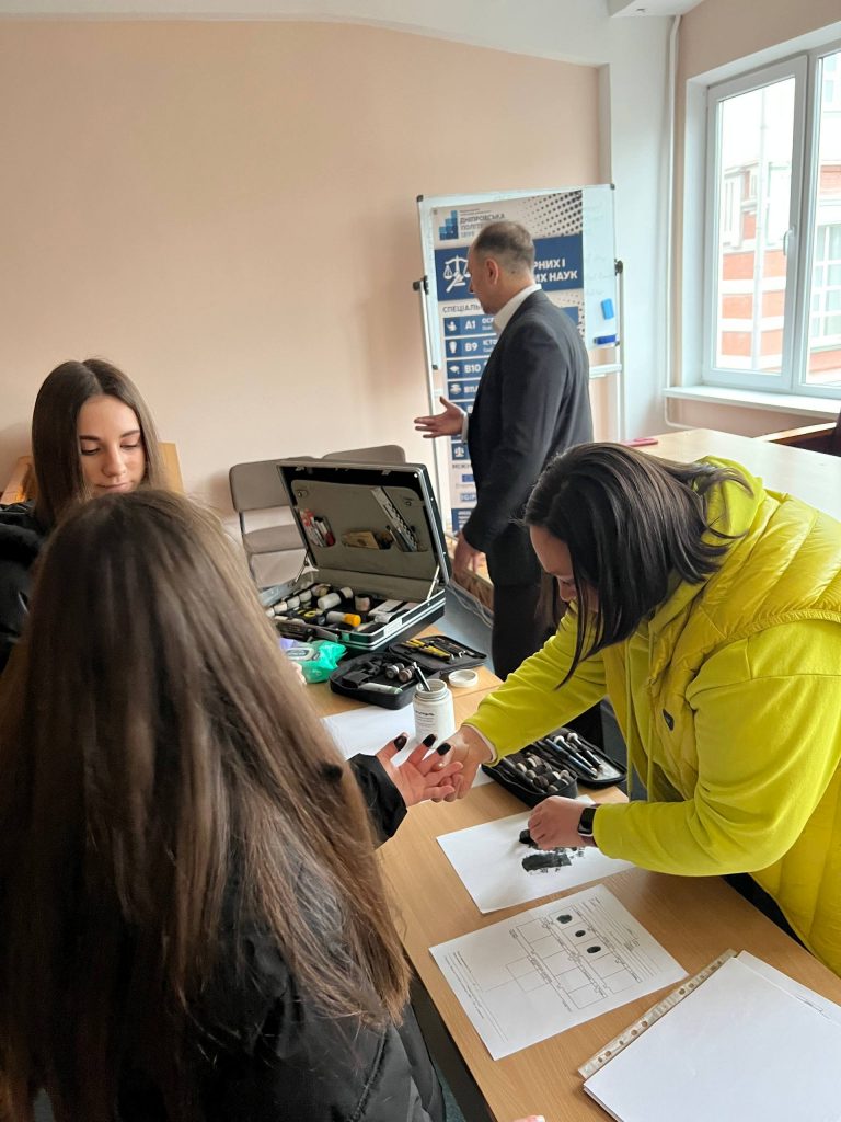 Особливий інтерес викликала практична частина заходу: учні спробували себе в ролі криміналістів та власноруч зняли відбитки пальців, познайомилися з основами дактилоскопії та дізналися, як відбитки використовуються у розкритті правопорушень.